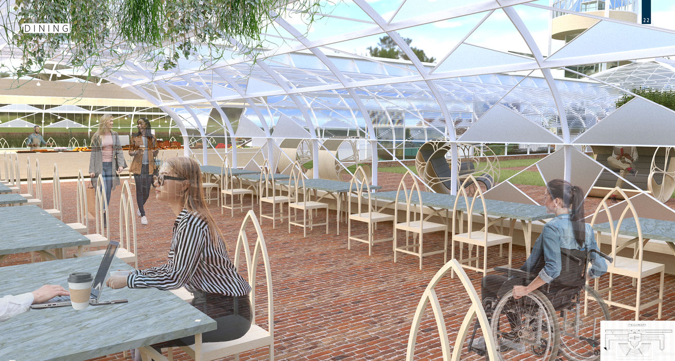 It ended up becoming much more than an interior design project. I conceptualized the architecture, including the exterior glazing, as well as the surrounding natural landscape. When I initially proposed a project type, I had a cultural arts center in mind, but halfway through the semester, I had a revelation. The unique location of Lyndhurst on the Hudson River demanded another purpose and I was somehow able to convince my instructor again to shift gears and move forward with the concept of designing a eco-education facility devoted on the conservation of the Hudson River and the surrounding ecosystems. I later came up with the name Living Lyndhurst because the fragile land and the buildings we build on them are living, breathing organisms meant to sustain life on Earth. This topic aligned with the concept of reviving and conserving the greenhouse itself.